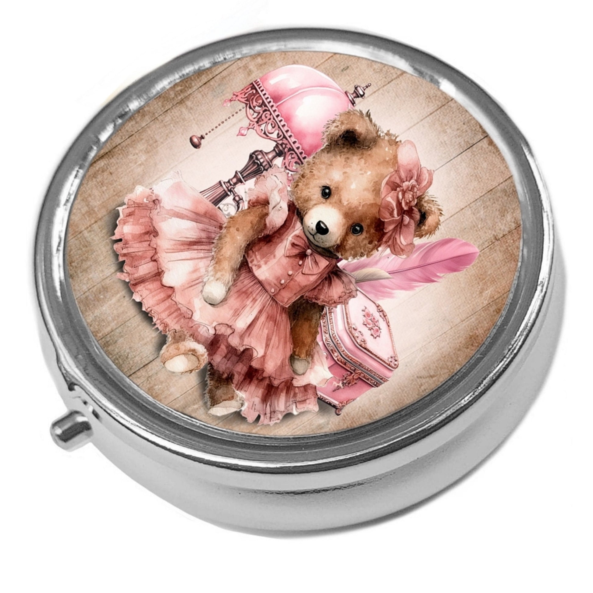Vintage Teddy Bear - Round Pill / Trinket Box